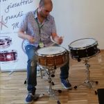 Per un imprevisto legato alla logistica di trasporto non mi è stato possibile usare il mio marchio DW e ho rischiato di non poter suonare alcun rullante in serata... In aiuto è intervenuto il grande artigiano Pippo Maniaci, che ringrazio per avermi fornito del suo gioiello, serie Etimoè, uno strumento sensibile e potente allo stesso tempo, e fermo nella accordatura e cala cordiera ben presente anche alle dinamiche più basse.